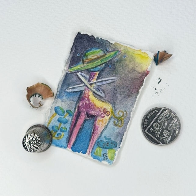 The original was created in watercolour and gouache on Arches paper, with the addition of gold paint to bring a sense of opulance and decadance to the painting.
